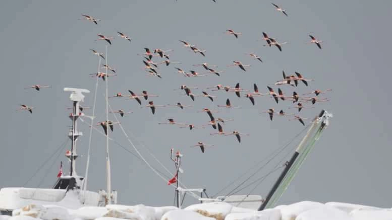 Kar ve soğuktan etkilenen yüzlerce flamingo barınağa sığındı...