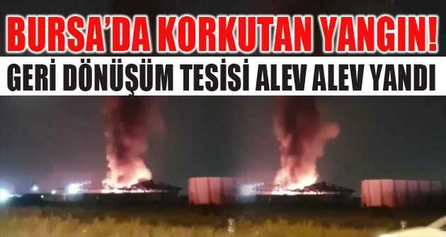 Bursa'da akşam saatlerinde geri dönüşüm tesisi alev alev yandı.