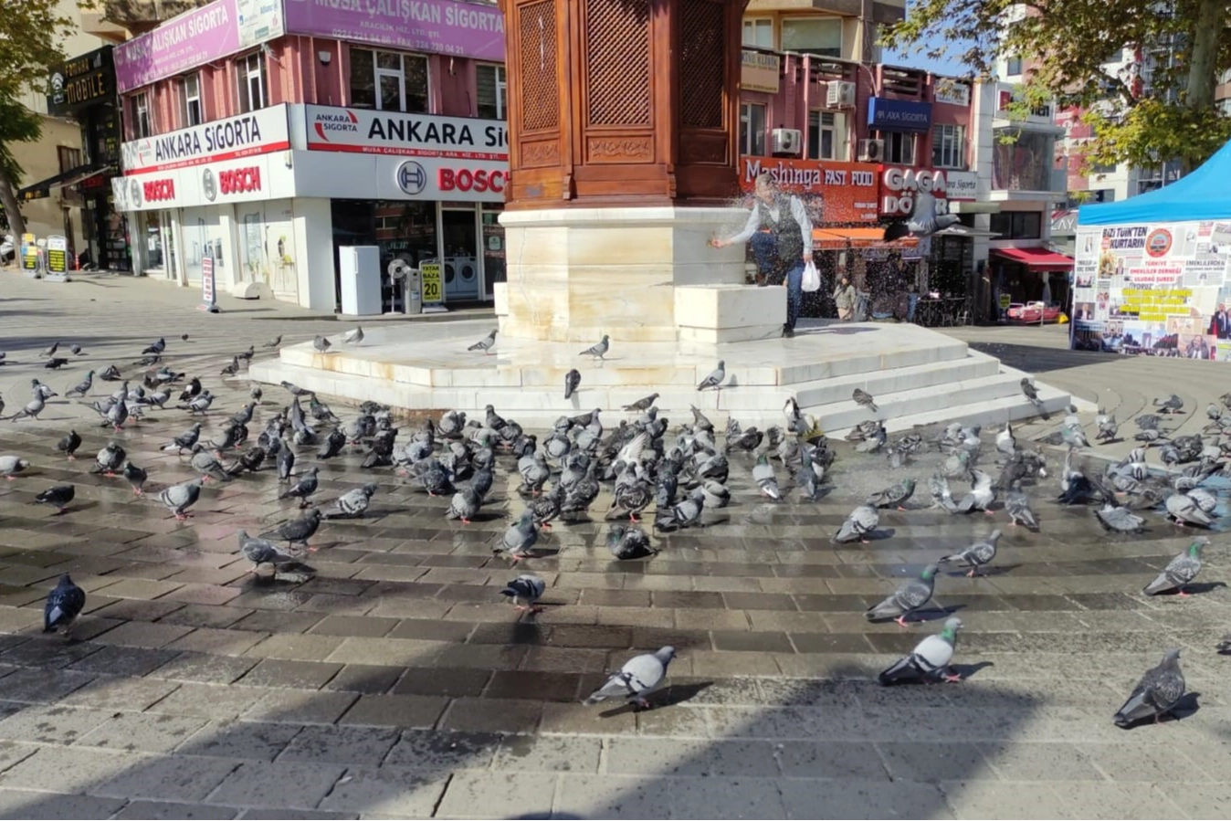 Meydandan geçen vatandaşlar ise güvercinlerin keyifli anlarını uzun süre izledi.