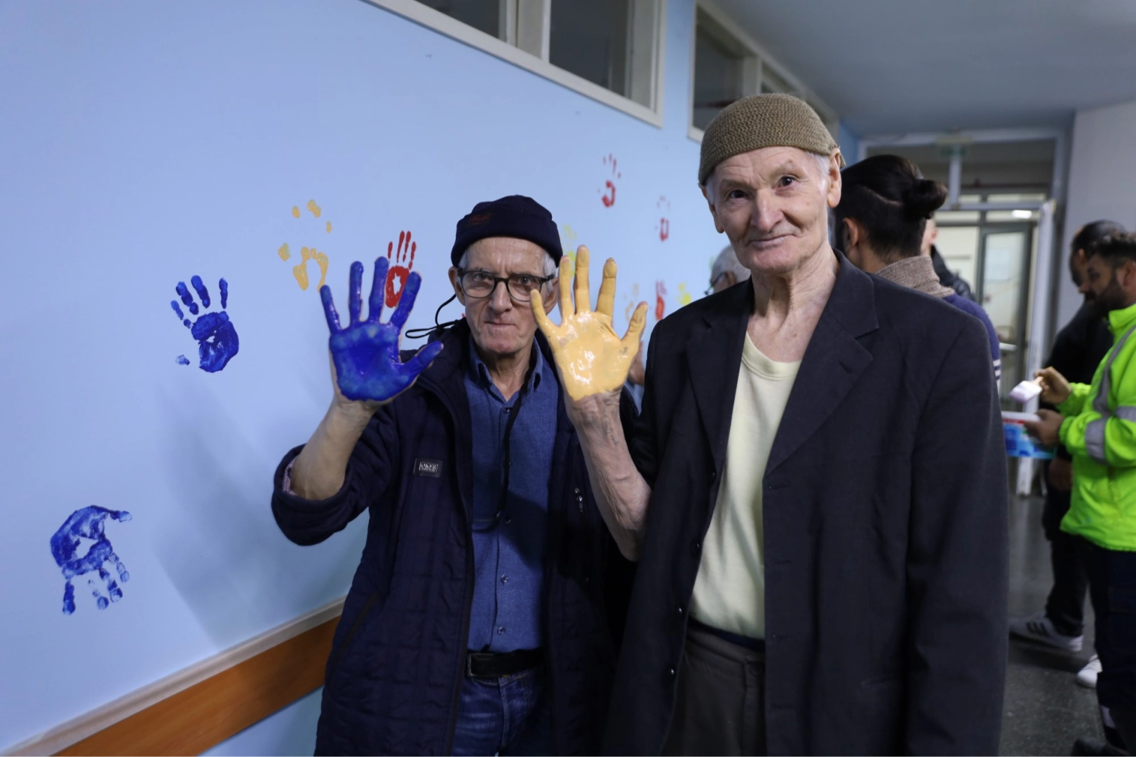 Bazı huzurevi sakinleri, ellerine aldıkları sprey boya ile grafitideki hünerlerini sergilerken, bazıları ise duvarlara el baskısı yapıp, geleceğe iz bıraktı.