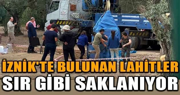 Üzerinde işlemeleri bulunan lahitler sır gibi saklanıp özel olarak getirilen konteynırlara yüklenerek yeni müzeye taşındı. Kültür ve Turizm Bakanlığı'nın sit alanı olarak ilan ettiği İznik Hisardere mevkinde bulunan zeytinlikte tarih fışkırmaya devam ediyor. Öncesinde 2 lahitin çıktığı alanda 2 lahit ve bir mozaik daha çıktı. Kültür ve Turizim Bakanlığı'ndan gelen özel yetkili arkeologlar bölgede inceleme yaptıktan sonra vinçlerle konteynırlar alana sokuldu. İnsan motifleri bulunan iki lahit üzerleri örtü ile kapatılıp vinçle bulundukları yerden kaldırılıp konteynerlere yerleştirildi. İddiaya göre lahitlerin Roma döneminden önemli bir komutanın ve eşinin mezarının olduğu öğrenildi. Lahitlerin içerisinde 2 ayrı iskeletin olduğu önemli eserlerin çıkıp çıkmadığı ise bakanlık tarafından açıklanacağı bildirildi.