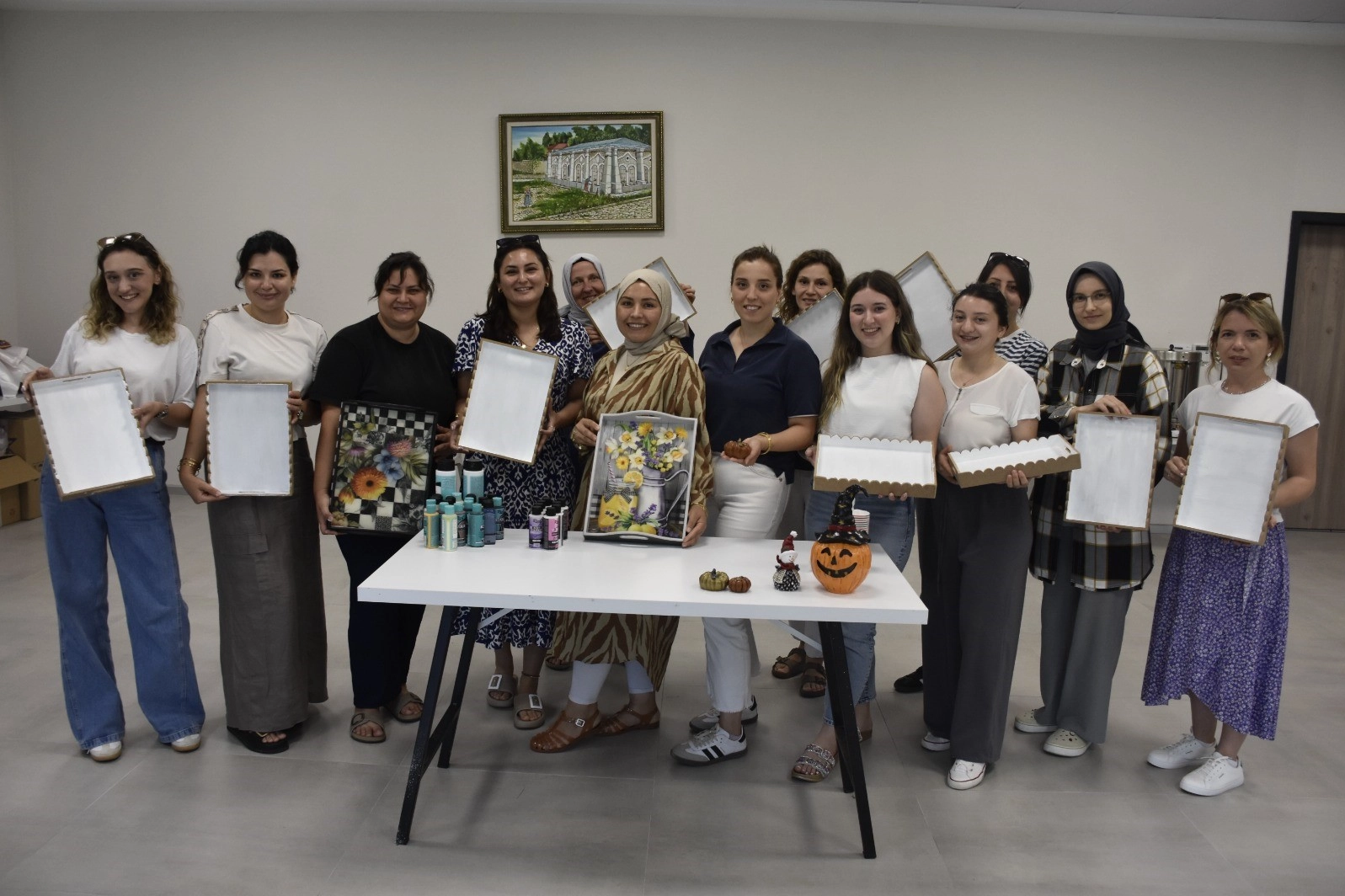 Eğitmen İlknur Aksoy eşliğinde yürütülen eğitimlerde, kursiyerler ahşap boyama sanatının inceliklerini öğrenirken aynı zamanda hayal güçlerini de özgürce tuvale yansıtma fırsatı buluyor. Fırçalarla buluşan fikirler, rengârenk ve özgün eserlere dönüşüyor.