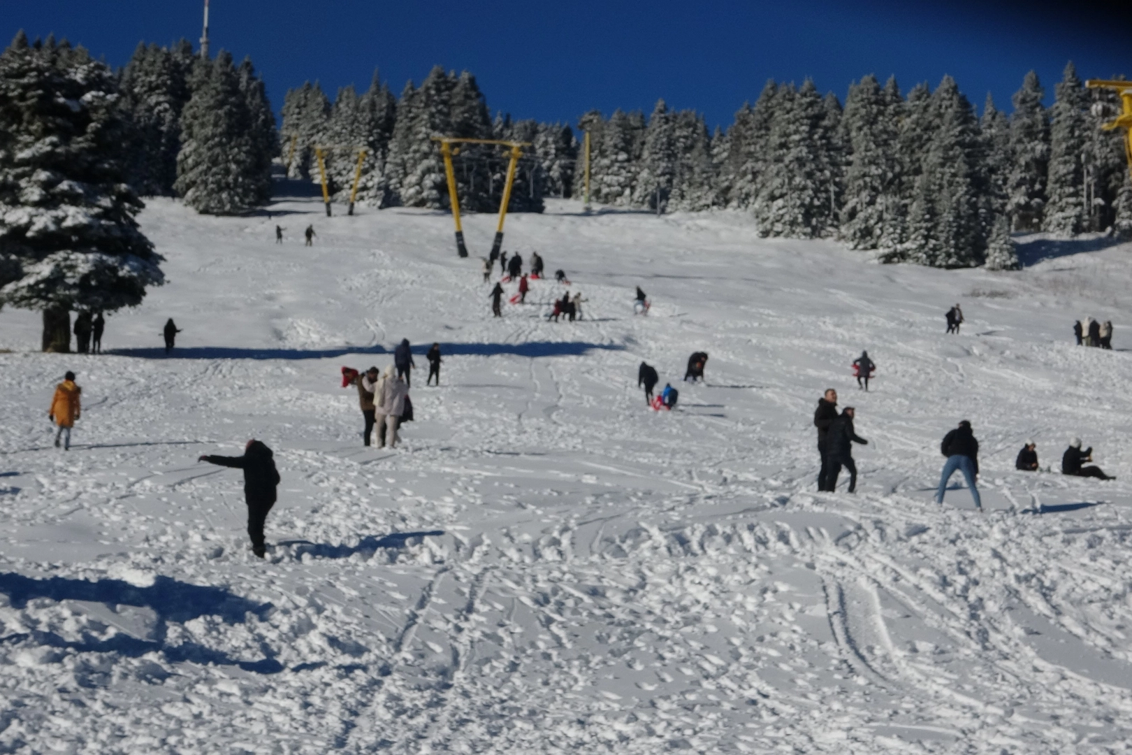 Kayak için biraz daha kar beklenirken, çocuklar kızaklarla kaydı.