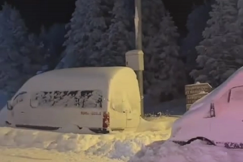 Uludağ'da bulunan ayılardan bazıları, kış uykusuna yatmayı unuttu. Gece saatlerinde yiyecek aramak için oteller bölgesine kadar inen ayıları, bir vatandaş fark etti.