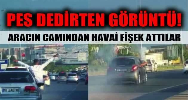 Edinilen bilgiye göre, görüntüler Yakın Çevre Yolu üzerinde meydana geldi. Asker eğlencesi için toplanan bir grup otomobillerle konvoy yaptı. Seyir halindeki otomobilden havaya havai fişek atarak ilerleyen şahısları gören diğer sürücüler şaşkına döndü. Havai fişek kutusunu da yola atarak devam eden konvoy, bir süre sonra gözden kayboldu.