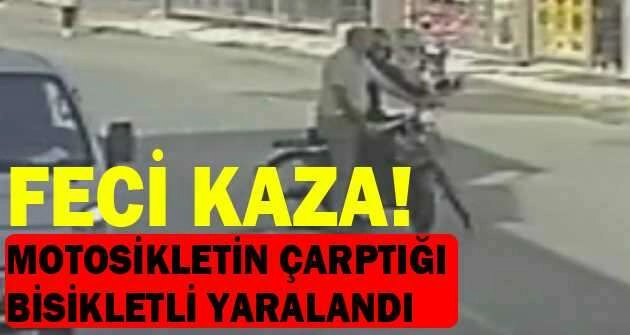 Bursa'nın İnegöl ilçesinde meydana gelen kazada motosiklet ile çarpışan bisikletin sürücüsü yaralandı. Kaza anı bir iş yeri güvenlik kameralarına saniye saniye yansıdı.
