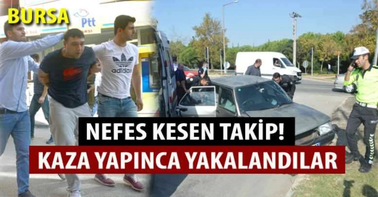 Bursa'nın Orhangazi ilçesinde orta refüje çıkarak durabildi. 18 kilometre boyunca polisi peşinden koşturan ve kaza yapan şüpheli şahıslar, zor kullanılarak gözaltına alındı.