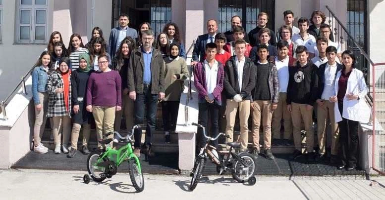 Mustafakemalpaşa'da TOKİ Hamzabey Anadolu Lisesi öğrencileri, proje kardeşlerine bisiklet hediye etti.