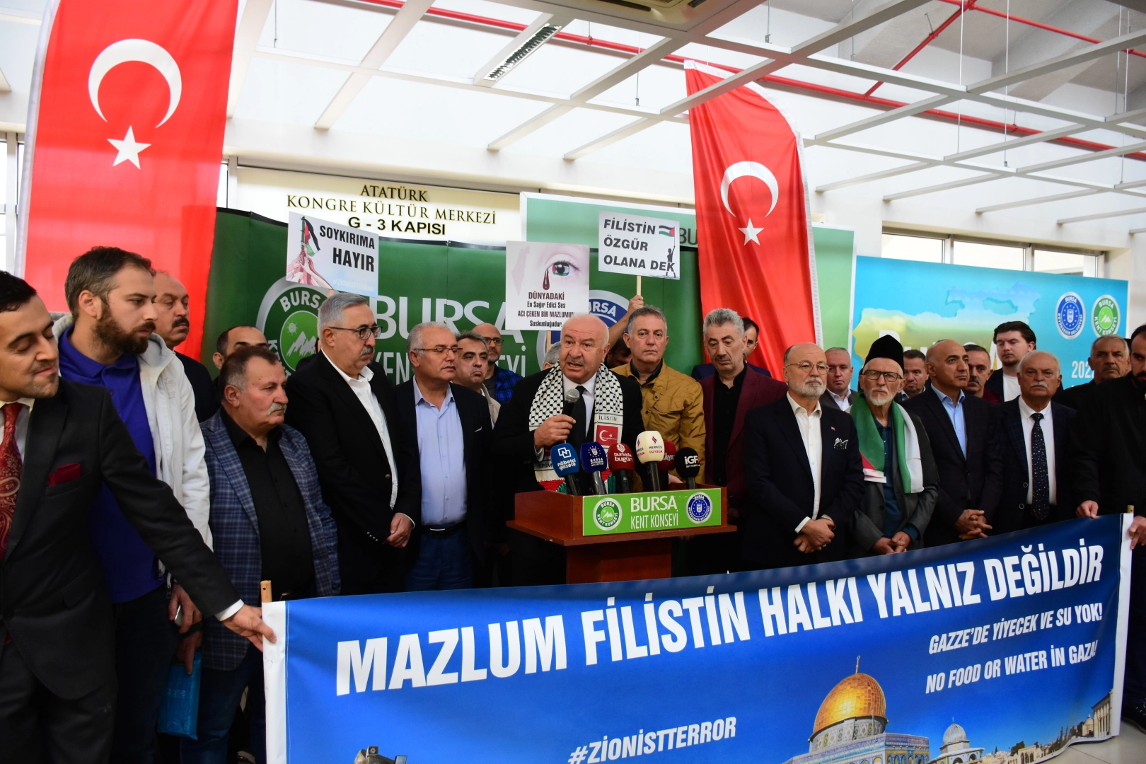 Bursa Kent Konseyi Başkanı Şevket Orhan, düzenlediği basın toplantısı ise Filistin’de yaşanan İsrail zulmüne tepki gösterdi.