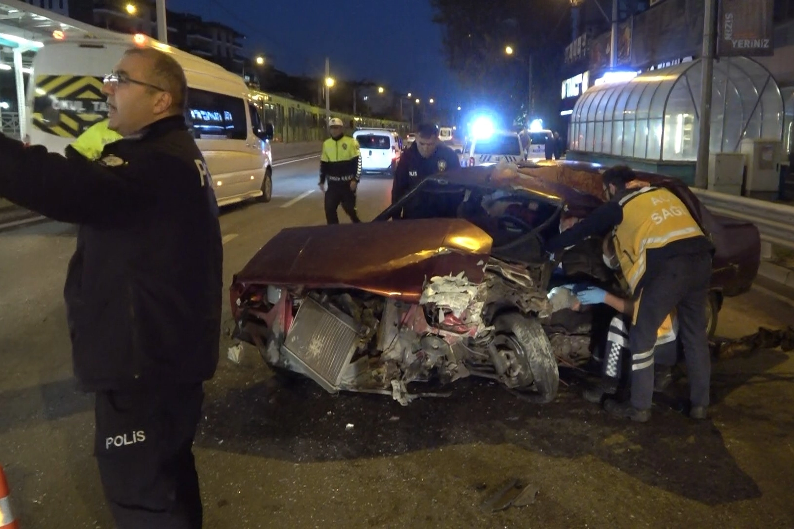 Kaza, saat 06.00 sıralarında merkez Osmangazi ilçesi Sırameşeler Mahallesi mevkiinde meydana geldi. Edinilen bilgiye göre, Mustafa G. (35) idaresindeki 10 ADF 524 plakalı otomobil, sürücüsünün idaresinden çıkarak Bursaray'ın bariyerine çarptı. Çarpmanın etkisiyle savrulan araçta şoför Mustafa G. (35) ve yolcu konumunda bulunan Samet S. sıkıştı. Çevredekilerin ihbarı üzerine olay yerine çok sayıda 112 Acil Sağlık ekibi, itfaiye ve polis sevk edildi. Kaza sonrası yolda metrelerce trafik oluştu. Polis ekipleri yolda güvenlik önlemleri alırken, sağlık ekipleri yaralılara ilk müdahaleyi yaptı. İlk müdahalenin ardından itfaiye ekiplerinin yardımıyla yaralılar, sıkıştıkları araçtan kurtarıldı. Yaralılar, ambulans ile hastaneye kaldırıldı. Polis, olayla ilgili tahkikat başlattı.