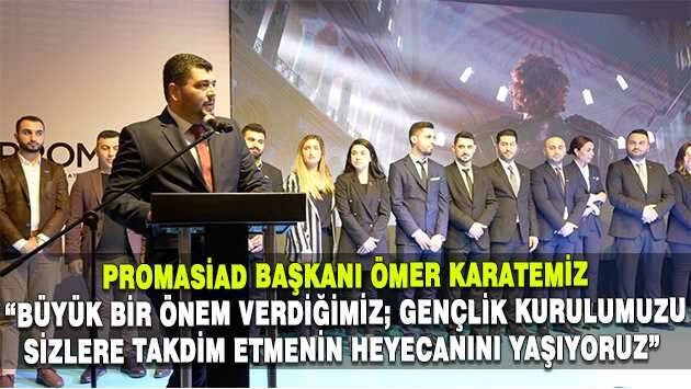 500 kişilik davetlinin katılımı ile düzenlenen programa İKMİB Başkanı Adil Pelister, İKMİB YK üyesi Tayfun Demir, İTO Başkan Vekili İsrafil Kuralay, MÜSİAD Genel Başkan Yardımcısı Muhammed Ali Özeken, İstanbul Mobilya, Kağıt ve Orman Ürünleri İhracatçıları Birliği Başkan Yardımcısı Adnan Bostan, Yaş Sebze Meyve İhracatçılar Birliği Yön.Kur. Başkan Vekili Hüseyin Bozdağ, Deva Partisi Genel Başkan Yardımcısı Elif Esen, PAGEV Başkanı Yavuz Eroğlu İSO Meclis Üyesi, Basım, Yayın Meslek Odası Başkanı Zekeriya Acar başta olmak üzere birçok STK temsilcisi katıldı. Konuşmasına fuar müjdesi ile başlayan Karatemiz, “fuar organizasyonumuzu uluslararası SİGN İstanbul Fuarı ile birlikte eş zamanlı, SIGN İstanbul Fuarının içinde ayrı bir bölüm olarak gerçekleştirmek düşüncesindeyiz. 8-11 Eylül tarihlerinde Tarsus Fuarcılık ile PROMOGIFT Markası ile düzenlenecek olan bu organizasyon için anlaşma sağladık.” dedi. Avrupa’da ve ABD’de düzenlenen promosyon fuarlarının promosyon ürünleri ve baskı teknolojileri endüstrisinin tek bir çatı altında toplanmış olduğunu belirten Karatemiz, bunun sektöre farklı bir dinamizm getireceğini ve uluslar arası ilginin üst düzeyde olacağını belirtti. Toplantıda konuşma yapan PROMASİAD Başkanı Ömer Karatemiz “Büyük bir önem verdiğimiz; hazırlık çalışmalarını yaklaşık bir yıldan bu yana titizlikle sürdürdüğümüz Gençlik Kurulumuzu sizlere takdim etmenin heyecanını yaşıyoruz” dedi. Ülkemizdeki önemli sorunlardan birinin bir sonraki kuşağa iş devretme güçlüğü olduğunu belirten Karatemiz geleceğin iş insanlarını yetiştirmek, onları hayata hazırlamak, ikinci kuşağın iş hayatına uyumunu sağlamak, aynı zamanda üyelerimizin sahip olduğu değerleri ve tecrübelerini gençlerle paylaşmasını amaçladıklarını belirtti. “Yaşları 18-35 yaş aralığında gençlerden oluşacak olan Gençlik Kurulu’nun, gençlerimiz için bir okul olacağına, burada yetişen arkadaşlarımızın hem kendi işletmelerine büyük katkıları olacağına, hem de ülkemizin kalkınması adına önemli çalışmalar içinde bulunacaklarına canı gönülden inandığını” belirten Karatemiz, sözlerini “Öyle gayretle ve azimle çalışın ki, büyüklerinizin yapamadıkları, ulaşamadıkları başarılara sizler ulaşın.” diyerek tamamladı. Ömer Karatemiz ’in ardından İKMİB Başkanı Adil Pelister, İTO Başkan Vekili İsrafil Kuralay ve MÜSİAD Genel Başkan Yardımcısı Ali Özken yaptıkları konuşmalarda Gençlik Kuruluna başarılar dilediler. İftar yemeği programı ve Gençlik Kurulu Lansmanı, Genç PROMASİAD Başkanı seçilen Sayın İlkay Yücel ve yönetiminin salondakilere takdim edilmesiyle son buldu. Genç PROMASİAD Yönetimi şu isimlerden oluşuyor: İlkay Yücel, Begüm Çebi, Muhammed Taştan, Büşra Kazo, Alperen Kalkan, Gülcan Eroğlu, Volkan Fırıldak, Ömer Karakaş, Tuncay Kaya, Arif Gündoğdu, Hakan Yağmur, Hediye Taşçı, Gökhan Uğurlu, Andaç Diler, Serkan Bulut.