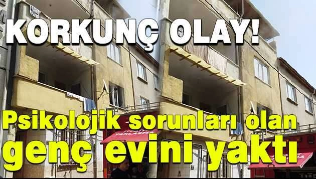 Bursa'nın İnegöl ilçesinde meydana gelen olayda psikolojik sorunları olan genç, ailesinin evini ateşe verdi.