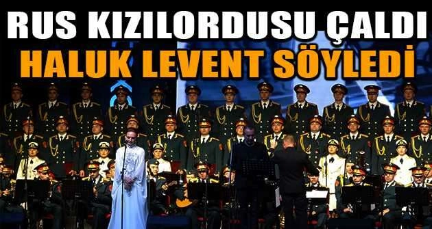 Muhteşem konser Bursa Büyükşehir Belediyesi öncülüğünde Podyum Park'ta düzenlenen konser, Kızılordu askerlerinin Türk ve Rus bayraklarını sahneye yerleştirmeleriyle başladı. Konserde sahne alan sanatçı Haluk Levent, Rus Kızılordusu ile birlikte İzmir Marşı ve Çanakkale Türküsünü seslendirdi. Büyükşehir Belediye Başkanı Alinur Aktaş’ın da izlediği konser vatandaşlardan büyük ilgi gördü. Konser repertuvarında Rus marşlarına da yer verildi.