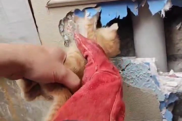 Merkez Nilüfer ilçesi Özlüce Mahallesi’nde bir evin duvarı içerisinde kedi sesleri duyan vatandaşlar durumu 112 Acil Çağrı Merkezi’ne bildirdi. İhbar üzerine Bursa Büyükşehir Belediyesi İtfaiye Daire Başkanlığı ekipleri harekete geçti. Ekipler, kedi sesinin geldiği duvarı balyoz yardımıyla kırdı. Yavru kedi, sıkıştığı yerden kurtarılarak annesinin yanına bırakıldı. O anlar anbean amatör kameraya yansıdı.