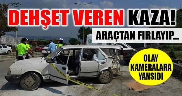 Bursa'da meydana gelen kazada araçtan fırlayan sürücü feci şekilde can verdi. O ânlar kameralara yansıdı.