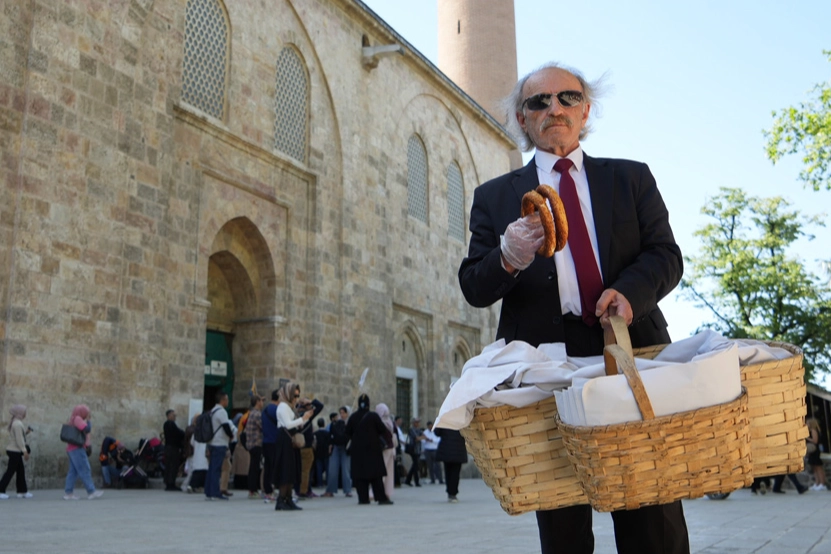 Bursa’da "Kravatlı Simitçi" olarak tanınan Ahmet Berksun (65), öğrenciyken yaptığı simitçiliği, kamudan emekli olduktan sonra da yapmaya karar verdi. Memurluk günlerinde giydiği takım elbiseyi, emekliliğinde de çıkarmayan Berksun, bu şekilde Bursa’nın tarihi noktalarında koluna taktığı sepetiyle simit satmaya başladı. Şıklığının yanı sıra renkli kişiliği ile de çarşı esnafının gönlünde taht kuran Berksun’u ilk görenler fotoğraf çektiriyor.