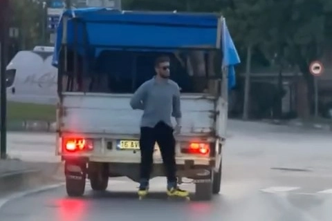 Olay, merkez Nilüfer ilçesinde meydana geldi. Patenle seyahat eden bir genç, önünde seyir halinde olan kamyonetin arkasına tutunarak ilerlemeye başladı. Tehlikeli anlar saniye saniye amatör kameraya yansırken, genç ise ışıkta bekleyen kamyonetin ilerlemesini de bekledi. Yeşil ışıkta ilerleyen kamyonete tekrar tutunarak seyahat eden gencin tehlikeli anları, amatör kameraya yansıdı.