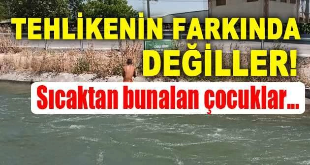 Bursa'nın Mustafakemalpaşa ilçesinde aşırı sıcaklardan bunalan çocuklar, tehlikeli ve yasak olmasına rağmen DSİ'ye ait sulama kanalında yüzerek serinliyor. İlçe genelinde 38 dereceyi aşan sıcaklarda serinlemeye çalışan çocuklar, tehlikeye balıklama atlıyor.