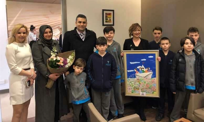 Medicana Hastanesi'ne 'Doktorum her yerde' teması kapsamında resim sergisi açan ilkokul öğrencileri, hekim resmederek büyük bir tuvale yansıttı. Okul Müdür Yardımcısı Gökhan Akıllı ile birlikte Medicana Hastanesi'nde Başhekim Uz. Dr. Neşe Tunalı'yı, Doruk Hastanesi Başhemşiresi Gül hemşire ile doktorları ziyaret etti. Başhekimlere özel çalışmaları ile birlikte günün anısına bir de çiçek takdim eden öğrenciler, sağlık çalışanlarının da tıp bayramlarını kutladı.