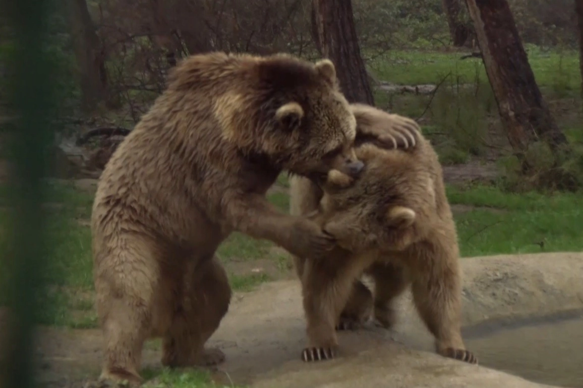Bu sene 15 Mart'a denk gelen Dünya Uyku gününde kış uykusundan uyanan Bursa'nın Karacabey ilçesindeki Ovakorusu Celal Acar Yaban Hayvanları Kurtarma ve Rehabilitasyon Merkezi'ndeki ayılar günlerini güreşip banyo keyfi yaparak geçiriyor.