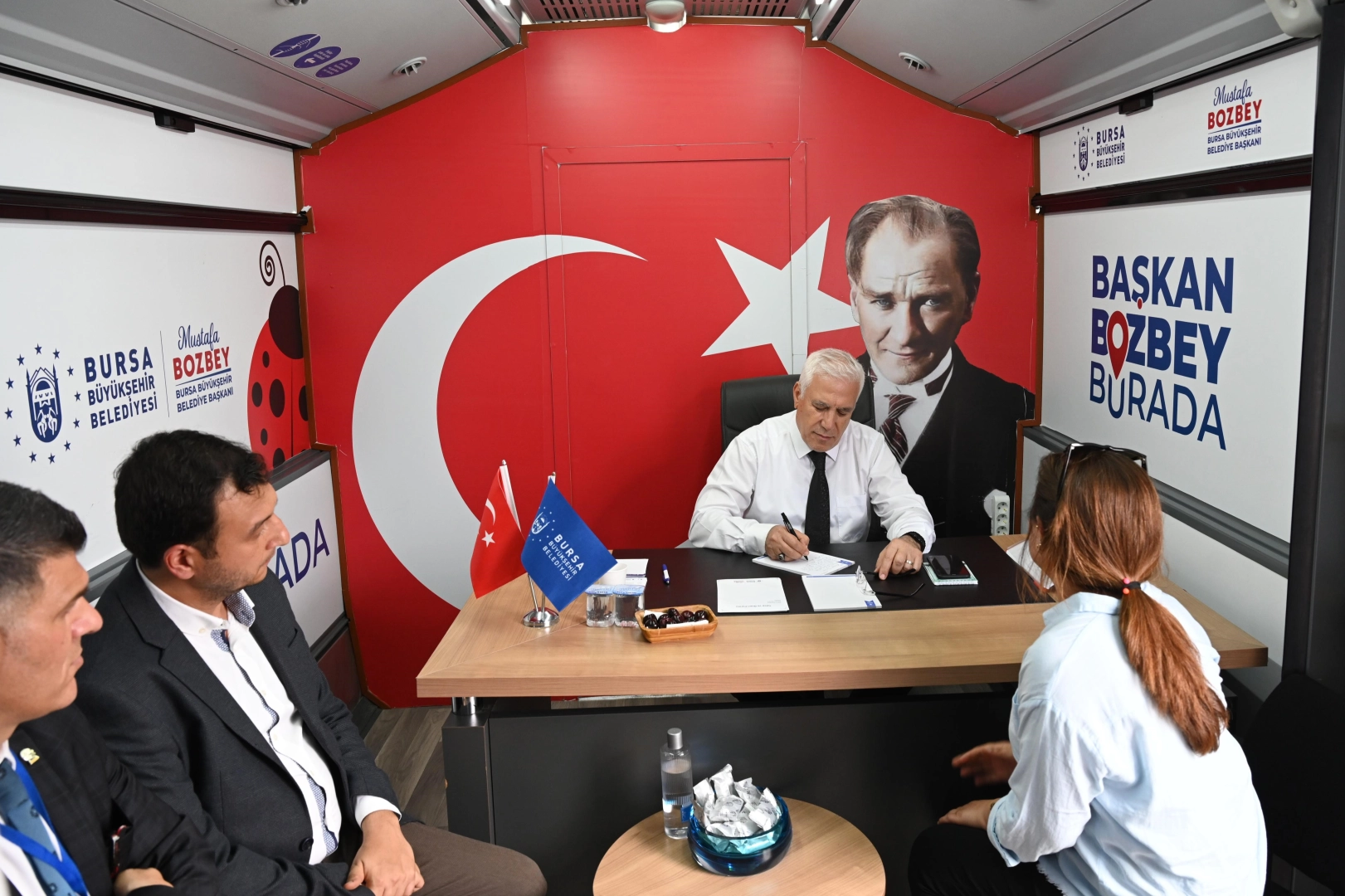 Bursa Büyükşehir Belediye Başkanı Mustafa Bozbey, Türkiye'de bir ilke imza atarak makamını ilçelere taşıdı. Otobüsteki makam odasında Keles ilçesi sakinlerini ağırlayıp sıkıntılarını dinleyen Başkan Mustafa Bozbey, "Uludağ'ın arka yüzündeki dağ yöresini tarım, hayvancılık, kırsal turizm ve kültürel faaliyetlerle ayağa kaldıracağız. Yapacağımız desteklerle şehirden köye geri göçü sağlayacağız" dedi. Nilüfer Belediye Başkanlığı döneminde makamını köylere taşıyan 5 yılda 64 mahalleyi iki kez ziyaret edip, yerinde vatandaşların sorunlarını dinleyen Başkan Bozbey, Büyükşehir Belediye Başkanı seçildikten sonra aynı uygulamayı 17 ilçeye taşıdı. Geçtiğimiz ay kentin en az nüfusa sahip ilçesi Büyükorhan'dan ziyaretlere başlayan Başkan Bozbey, bugün de Uludağ'ın arka yüzündeki Keles ilçesindeydi. Önce Büyükşehir Belediyesi'nin iştiraklerinden Besaş Keles Süt Tesisi'ni ziyaret eden Başkan Bozbey, tadım yaparak ürünlerin kalitesini test etti. Ak Partili Belediye Başkanı Ali Doğru'yu makamında ziyaret eden Büyükşehir Belediye Başkanı Mustafa Bozbey, ilçenin meselelerinin çözümünde ortak hareket ettiklerine vurgu yaptı. Daha sonra Muhtarlar Derneği'nde tüm mahalle muhtarlarını dinleyen Başkan Bozbey, Cuma namazını da ilçede kıldı. Çıkışta vatandaşlarla selamlaşan, kıraathane ve pazardaki vatandaşlarla tek tek dolaşan Bozbey daha sonra makam otobüsüne geçti. İlçe merkezinde vatandaşların ilgisiyle karşılaşan Bozbey, bugün kendisinden randevu isteyen vatandaşlarla tek tek makam otobüsünde görüştü. Başkan Mustafa Bozbey, söz verdikleri gibi vatandaşı seçimden seçime ziyaret etmeyeceklerini, her ay 2 ilçede vatandaşların ayağına giderek onlarla halk günü yaptıklarını ifade ederek, "Makamımı bir otobüse taşıdık. Burada vatandaşlarımızla dertleşiyoruz, sıkıntılarını dinliyoruz. Bu projeye 2 hafta önce en küçük ilçemiz olan Büyükorhan’dan başladık. Bugün de Keles’teyiz. Projemizin asıl amacı konuların yetkilileri ile birlikte alanda olmak. Vatandaşın bize ilettiği problemleri yerinde dinleyip hızlıca aksiyon alıp sorunları çözmek için gayret ediyoruz. Bu proje örnek bir projedir. Bursa’da yeni bir belediyecilik anlayışı ortaya koyup tüm ülkeye örnek olmaya çalışıyoruz’’ diye konuştu. ‘Başkan Bozbey Burada’ uygulanış yönteminden de bahseden Başkan Mustafa Bozbey, "Kırsal mahallelerimizde yoğun talep ile karşılaşıyoruz. Yol düğün salonu çardak gibi. Tabii işsizlik de önemli bir sorun ve iş talebiyle de yoğun şekilde karşılaşıyoruz. Örnek olarak bu bölgede oturan vatandaşlarımız diyorlar ki bu bölge gelişsin daha fazla yatırım olsun. Şehirde oturan çocuklarımız torunlarımız gelip burada yaşasınlar diyorlar ve kesinlikle haklılar. Dağ yöresine özel projelerimiz var. Buradaki sıcak su bölgelerini değerlendirmeyi arzu ediyoruz, kırsal turizmi çok önemsiyoruz. Bununla birlikte hayvancılığı ve tarımı geliştirmek istiyoruz. Örnek olarak kiraz ilçenin en önemli ürünlerinden biri. Bu sene 20 bin ton civarında olan rekolte beni son derece sevindirdi. Nitelikli ve herkesin tatması gereken bir kiraz. Arzumuz ilçemizin bu değerler doğrultusunda gelişim göstermesi. Bugün çiftçimize saman ve koyun desteği yaptık. Sadece burada değil tüm bölgelerimizde mazot ve fide desteğine hazırlanıyoruz, ilaçlama konusunda da destek olacağız. Kentte çiftçilik ve hayvancılık yapanların gelirlerinin yükselmesi için çabalıyoruz. Bu amaç doğrultusunda onların yanında olacağız, destek olacağız. Başkan Bozbey, Keles'ten mutlu bir şekilde ayrılırken, toplantılara Genel Sekreter, yardımcıları ve daire başkanları da katılarak vatandaşların sorunlarına anında çözüm üretmeye çalıştılar.