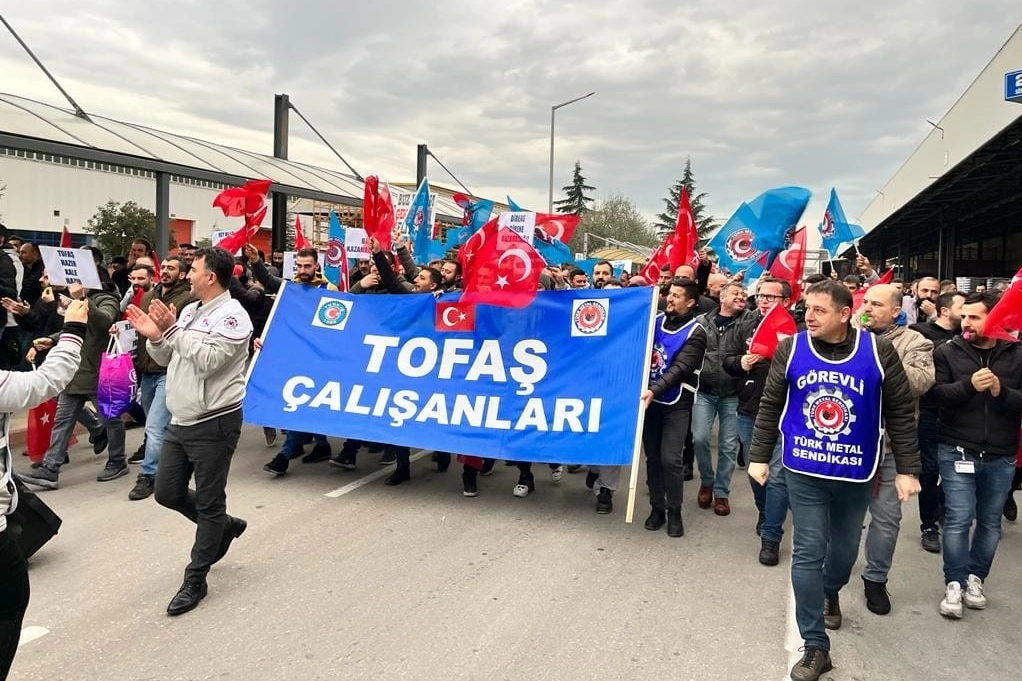 MESS sendikası tarafından 2023 - 25 toplu iş görüşmeleri sonrası yüzde 35'lik ücret zammını beğenmeyen Tofaş işçileri bir süredir tepkilerini dile getirmek için eylem yapıyor.