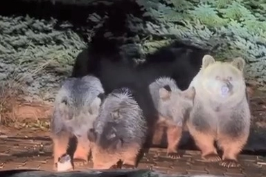 4 kişilik ayı ailesi, verilen yiyecekleri afiyetle yedi. O anlar anbean amatör kameralara yansıdı.