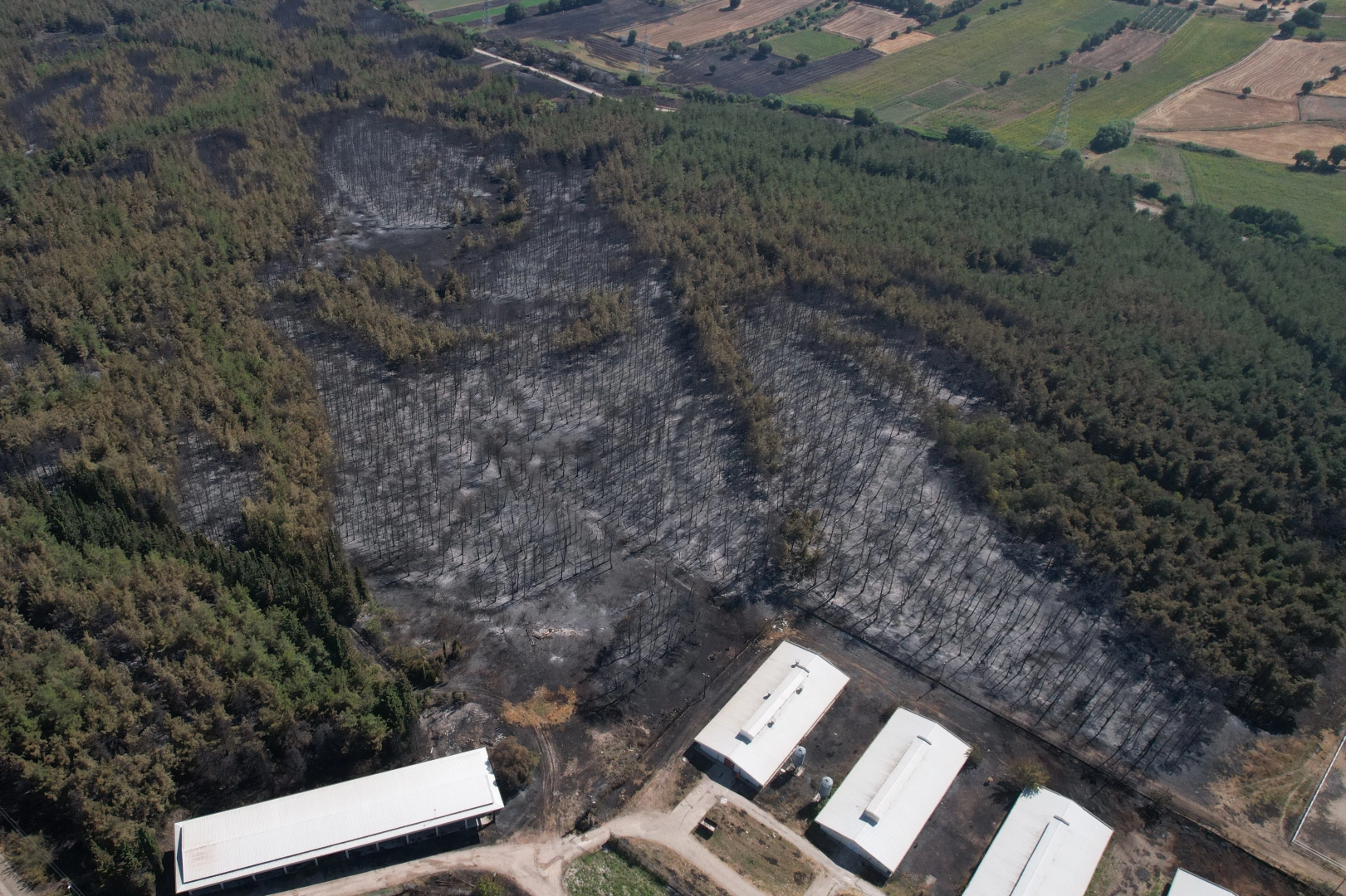 Bursa'da anız yangını olarak başlayan ve sonrasında Uludağ Üniversitesi kampüsündeki ormanlık alana sıçrayan yangının acı bilançosu bugünün ilk ışıklarıyla havadan görüntülendi. Görüntülerde Veterinerlik Fakültesi'nin tesislerinin ve barınaklarının da büyük tehlike atlattığı gözler önüne serildi. Yangın, dün merkez Nilüfer ilçesi Yolçatı Mahallesi'nde saat 14.30 civarında başladı. Yangın, rüzgarın etkisiyle kısa sürede Uludağ Üniversitesi'nin kampüs içindeki ormanlık alana sıçradı. 9 bin dönümlük sık çam ağaçlarıyla kaplı kampüs içindeki orman yangınını söndürme çalışmalarına Orman Bölge Müdürlüğü, Bursa Büyükşehir Belediyesi itfaiye ekipleri, Uludağ Üniversitesi personelleri, AFAD, jandarma ve polise ait 40'tan fazla kara aracı, 4 helikopter 2 yangın söndürme uçağı ile birlikte bine yakın personel katıldı. Veterinerlik Fakültesi'ndeki hayvanların tahliyesi yapılırken, muhtemel bir durumda Uludağ Üniversitesi Tıp Fakültesi Hastanesi için de acil durum planları devreye sokuldu. Yangın havadan ve karadan yapılan müdahale ve rüzgarın etkisini azaltmasıyla söndürüldü. Yanan bölge sabahın ilk ışıklarıyla birlikte havadan görüntülendi Sabahın ilk ışıklarıyla beraber Uludağ Üniversitesi'nin alevlere teslim olan Görükle kampüsü içindeki ormanlık alanları havadan dron ile görüntülendi. Görüntülerde çamlarla bezeli ormanlık alanın yeşilden griye dönmesi yürekleri dağladı.