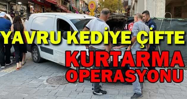 Bursa'da önce esnaf sonra da itfaiye ekiplerinin seferber olduğu yavru kediyi, annesi kurtardı. Çıkması için süt ve ciğer verilen kedi annesinin sesini duyunca çıktı, fakat korkup bu kez de kendisini kurtarmaya gelen itfaiye ekiplerinin aracının içine girdi.