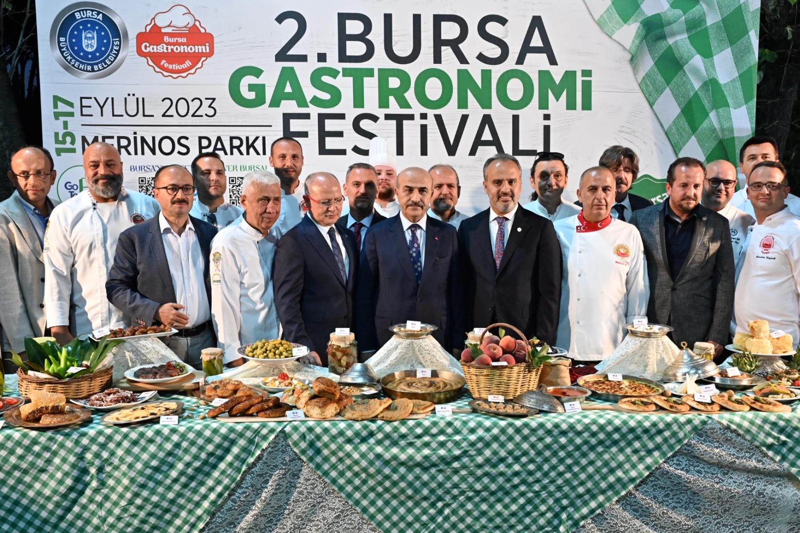 Bursa Büyükşehir Belediye Başkanı Alinur Aktaş, Osmanlı’ya başkentlik etmiş, o dönemin eserlerini hala bünyesinde bulunduran eşsiz lezzetleriyle aynı zamanda önemli bir gastronomi şehri olan Bursa’da yaşamanın önemli bir ayrıcalık olduğunu söyledi. Bursa’nın markalaşmış ve coğrafi işaret tescili bulunan 30 civarında ürünü olduğunu ve bu sayının her geçen gün arttığını hatırlatan Başkan Aktaş, “Bu lezzetlerimizi tanıtmak ve turizme kazandırmak için bu organizasyona geçen yıl başladık. Biz burada stant ücreti almadan maalesef döner ikram edecek firma bulamamıştık. Sağ olsun sonradan iki firmamız çağrımıza kulak verdi ve bir de sosyal tesislerimizin dönerini Bursalılarla buluşturduk. Ama asla pes etmeden sizlerle dönem dönem yaptığımız istişarelerle, yanlışıyla, doğrusuyla Bursa'da ilk kez bir gastronomi festivaliyle, hocalarımızla ilgili paydaşlarla beraber yola çıktık. Kadın kooperatiflerimizi işin içine kattık. Ve gerçekten Bursa unutulmaz günler yaşadı. Önemli tecrübeler kazandık” dedi.