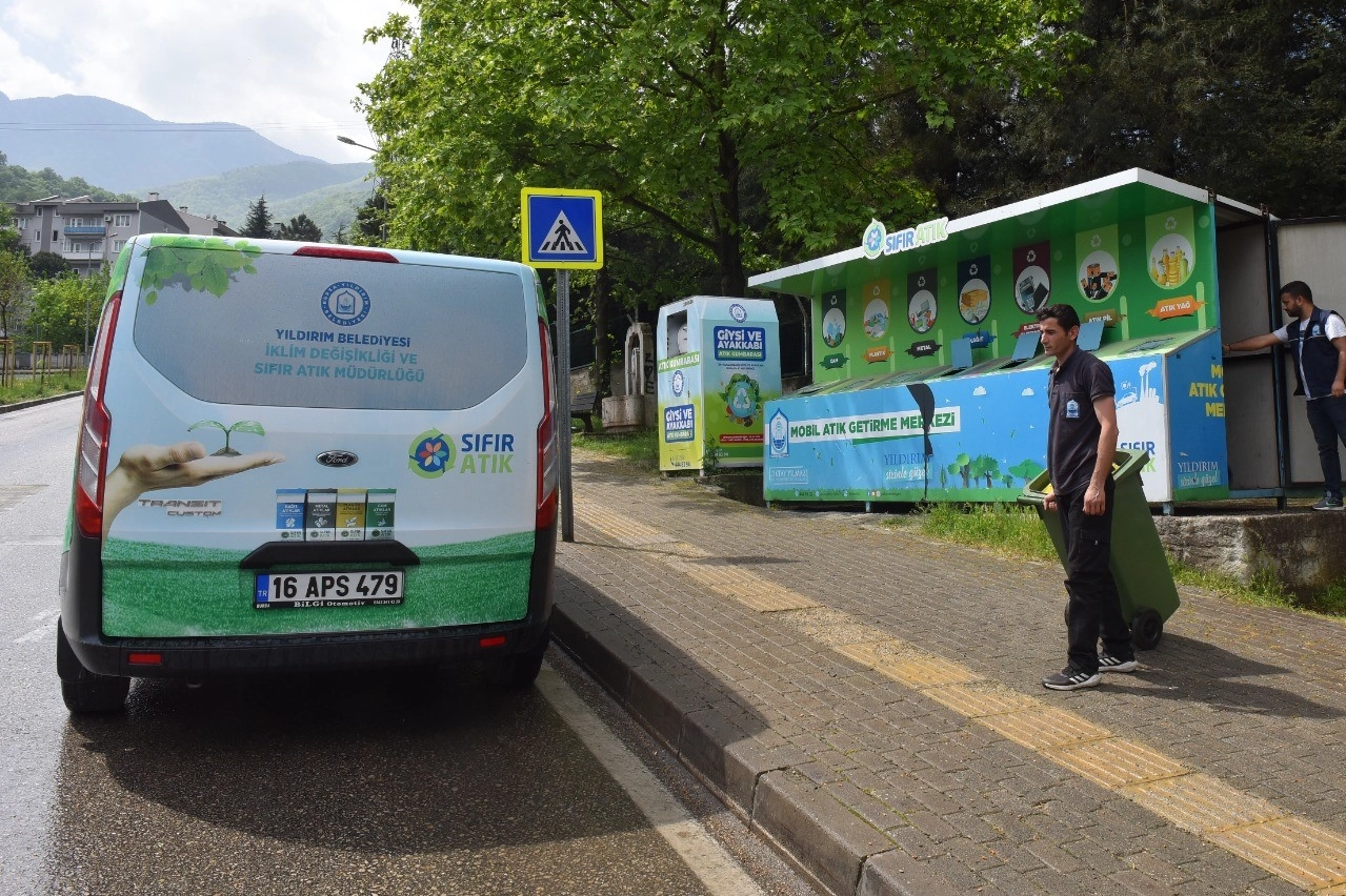 Yıldırım Belediyesi İklim Değişikliği ve Sıfır Atık Müdürlüğünce 2019 yılından bu yana ilçenin 55 noktasına mobil atık getirme merkezi kuruldu. Kâğıt, metal, cam, plastik, elektrik, elektronik atıkların yanı sıra bitkisel yağ ve atık pillerin dönüşümüne katkı sağlayan Yıldırım Belediyesi, ilçedeki mobil atık getirme merkezlerinin sayısını 100’e çıkarmayı hedefliyor. Yapılan bu uygulama ile bir yandan doğal kaynaklar korunurken, diğer yandan çevre kirliliğinin önüne geçilmesi amaçlanıyor. Yıldırım Belediyesi'nin başlattığı bu çalışma sürdürülebilir bir çevre yönetimi oluşturma hedefini de destekliyor. Geri dönüşümü teşvik etmek amacıyla ilçenin dört bir yanına 7 farklı türde atık toplayan mobil atık getirme merkezleri kurduklarını ifade eden Yıldırım Belediye Başkanı Oktay Yılmaz, “Ekiplerimizin sitelere, okullara ve meydanlara yerleştirdikleri mobil atık getirme merkezleri ile atıklar kaynağında ayrıştırılarak ekonomiye geri kazandırılıyor. Gerçekleştirdiğimiz geri dönüşüm çalışmaları sayesinde hem çevremizi koruyor hem de ekonomimize artı değer katıyoruz. Yıldırım Belediyesi olarak, Yıldırım’ı çevre dostu bir kent haline getirmek için çalışmalarımızı sürdüreceğiz” diye konuştu.