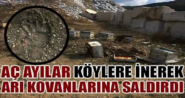 Aç ayılar köyle inerek birçok kovana zarar verdi. Binlerce arının telef olduğu ayı saldırısı, Çördük ve Hacıali kırsal mahallerinde yaşandı. İki yerde 400 kovan arısı bulunan bal üreticisi Recep Şahin, ikamet ettiği merkez Lalaşahin Mahallesi’nden arı kovanlarını kontrol etmek için Hacıali'ye gitti. Şahin, 200 kovanın bulunduğu bölgeye gidince karşılaştığı manzarayla şok oldu. Gece saatlerinde yiyecek arayan ayıların tellerle çevrili bahçeye girdiği ve arı kovanlarını tahrip ettiği görüldü. Akşam ayı nöbetine kalan Recep Şahin, ikinci bir şoku ise sabah saatlerinde yaşadı. İlçe merkezine 3 kilometre mesafedeki Çördük’te 200 kovan arısı daha bulunan Şahin’in buradaki peteklerine de ayıların dadandığı tespit edildi. Mermer ocakları mevkiinde parçalan kovanların yanında ayıların ayak izinin olduğu belirlendi. Ayı saldırısında Recep Şahin’e ait 30’u aşkın kovan tamamen zarar gördü. Recep Şahin, “Bir günde iki şok birden yaşadık. Bir tarafı kontrol ederken diğer taraftaki arı kovanlarımız büyük zarar gördü. Hem arılarımız hem de balımız mahvoldu. Bir an önce yetkililerin bu soruna el atmalarını, zararımızın karşılanmasını bekliyoruz. Bu bölgede birçok bal üreticisi var ve herkes tedirgin. Ayıları avlamak yasak olduğu için elimiz kolumuz bağlı. Bugün peteklere zarar veren ayılar, yarın insanlara ve hayvanlara da saldırabilir” dedi.