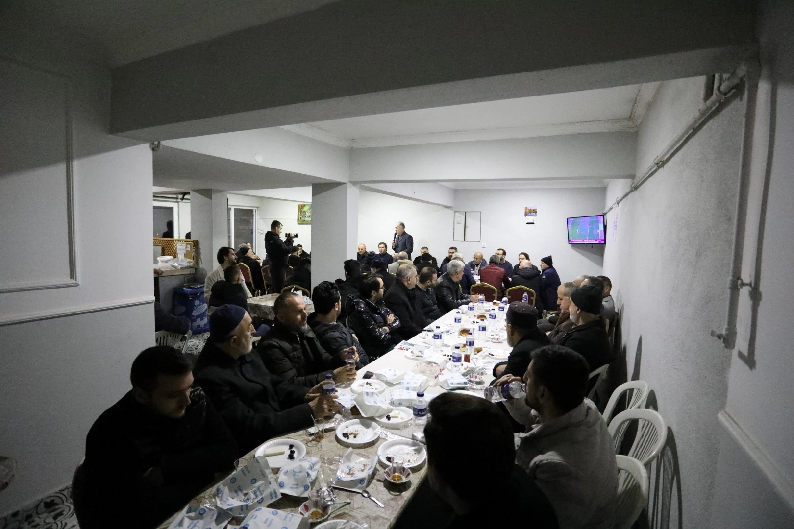 MAHALLENİN SORUNLARI KONUŞULUYOR Vatandaşların istek, şikayet ve dileklerini ilk ağızdan Başkan Taban ve ilgili yöneticilere ilettiği Bereket Sofrası Halk Günleri etkinliğinde kılınan sabah namazının ardından mahalle sakinleri ve cami cemaatiyle simit, zeytin ve peynir ile kahvaltı yapılırken, aynı zamanda mahallenin ve bölgenin sorunları dinlenerek birlikte ortak çözümler üretiliyor. Belediye Başkanı Alper Taban ile beraberindeki AK Parti İlçe Başkanı Mustafa Durmuş, Belediye Başkan Yardımcısı Emin Dündar, meclis üyeleri ve AK Partili yöneticilerin katılımıyla gerçekleşen Bereket Sofrası etkinliğinde, sabah namazının kılınmasının ardından caminin avlusunda bulunan çay ocağında cemaatle birlikte kahvaltı sofrasına geçildi.
