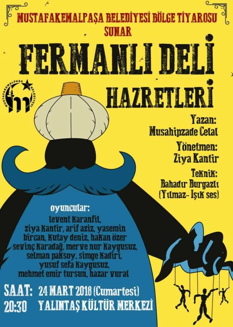 Mustafakemalpaşa Belediyesi Bölge Tiyatrosu, 27 Mart Tiyatrolar Günü etkinlikleri kapsamında ‘Fermanlı Deli Hazretleri’ oyununu sanatseverlerin beğenisine sunacak.