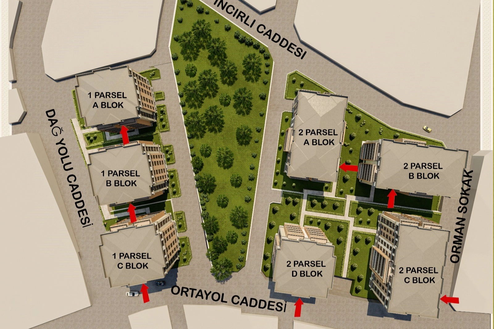 Onaylı imar planında konut imarlı iki yapı adası ve park alanı yer alan proje alanında iki ayrı konut imarlı yapı adasında olacak şekilde toplamda 7 adet blok, 238 bağımsız bölüm bulunacak. Yaptığımız imar uygulamasıyla 3 bin 925 metrekarelik yeşil alanı da bölgeye kazandırmış olacağız