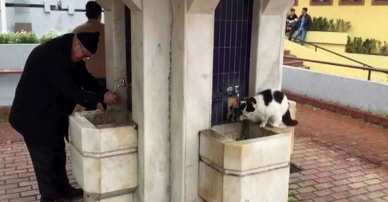 16. yüzyılda yapılan Setbaşı Camii çevresinde pek çok sokak kedisi yaşıyor. Cami cemaati tarafından beslenen, sokak kedileri abdest almak için şadırvana gelenlerin açık bıraktığı musluktan patileriyle su içiyor. Sokak kedileri kana kana susuzluğunu giderken, insanın içini ısıtan görüntüler ortaya çıktı. Cami cemaatinin sokakta yaşayan kediler için bıraktığı su kabı yerine patileriyle akan musluktan su içmeyi tercih eden kedi, cemaat tarafından çoğu zaman salamla, sosisle besleniyor.