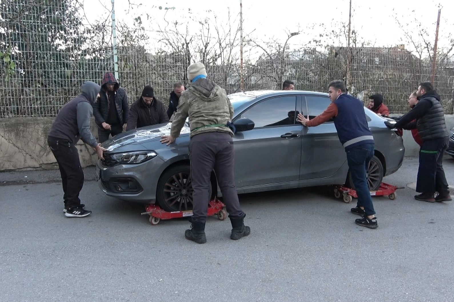 ARAÇLARA ZARAR GELMEDEN HIZLI BİR ŞEKİLDE TAŞINIYOR Pazarcı esnafına hizmet amacıyla geliştirdikleri yöntemde pratik ve araçlara zarar vermeden araçları bulunduğu yerden taşıyabildiklerini kaydeden Aksu, “Pazar yerinde aracı çekerken sadece aparatla olmuyor bu el birliği ile pazarcı esnafının da desteğini alarak hep birlikte çekiyoruz. Böyle bir yöntem geliştirdik. Geçtiğimiz günlerde İstanbul’da farklı bir yöntem gördük. Araçların altına tepsi koyup halatla çekiyorlar, hatta araca zarar veriyorlar. Bizim geliştirdiğimiz yöntem ülkemizin her yerinde kullanılabilir. Pratiklik açısından ve araçlara zarar vermeden basit bir şekilde araçları çekebiliyoruz” şeklinde konuştu.