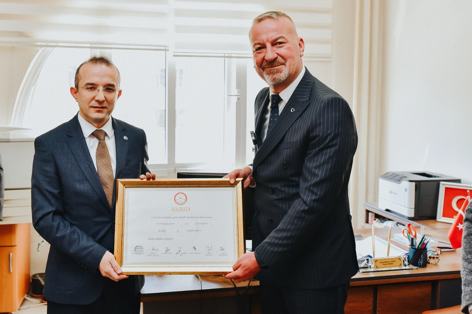 Bursa'nın Karacabey ilçesinde İYİ Parti'den Belediye Başkanı seçilen Fatih Karabatı, mazbatasını alarak görevine başladı.