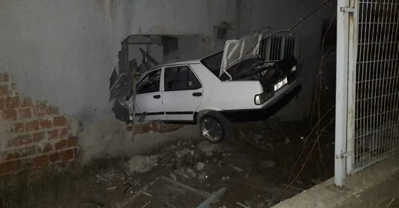 İnegöl'de kontrolden çıkan otomobil kullanılmayan bir eve daldı, kazada 2 kişi yaraladı.