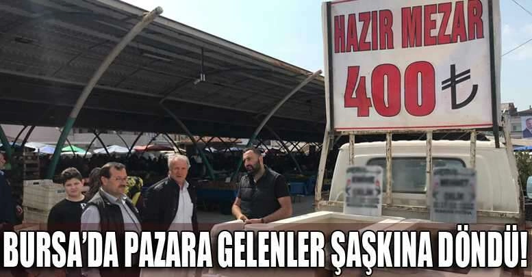 İznik'te pazar yerinde, kamyona yüklenerek getirilen hazır mezarlar 400 liradan satışa sunuldu. Pazara gelenler, mezar taşlarını görünce büyük şaşkınlık yaşadı.