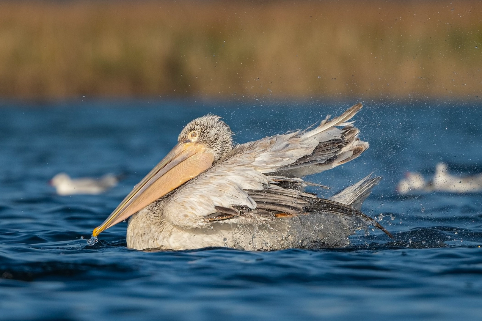 Gün boyu avlanma dışında en çok kış öncesi tüylerini düzenlemekle ilgilenen tepeli pelikanlar, 3 buçuk metreye varan kanat açıklığıyla Türkiye'nin en kocaman kuşları olarak biliniyor.