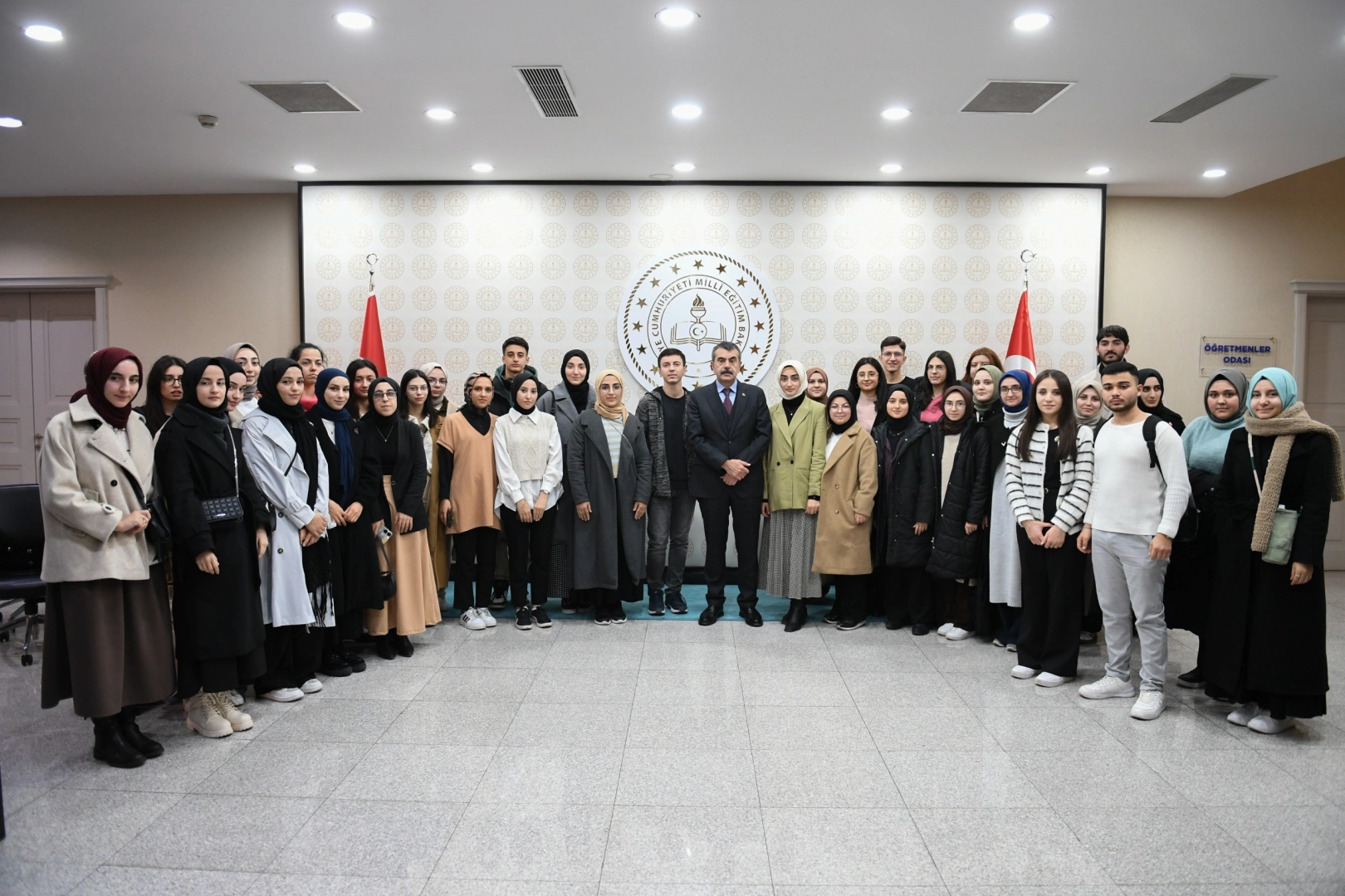 Faaliyetlerini aktif olarak sürdüren BUÜ Hür Eğitimciler Topluluğu, geniş bir Ankara gezisi düzenledi. Çok sayıda öğrencinin katıldığı gezi programı Cumhurbaşkanlığı Külliyesi’ndeki Beştepe Camii ziyaretiyle başladı. Millet Kütüphanesi’ni de ziyaret ederek, mevcut eserleri inceleyen topluluk üyeleri, Milli Eğitim Bakanlığı Personel Dairesi Genel Müdürü Bünyemin Çiftçi ile bir araya geldi. Öğrenciler, eğitim politikalarına dair görüş alışverişinin ardından Milli Eğitim Bakanı Yusuf Tekin’in konuğu oldu. Öğrencilerle bir araya gelen Bakan Yusuf Tekin, devam eden çalışmalar hakkında açıklamalarda bulundu. Topluluk üyeleri de uzun süredir yürüttüğü sosyal sorumluluk faaliyeti “Bir İyilik Yolculuğu” projesini anlatmalarıyla program sona erdi.