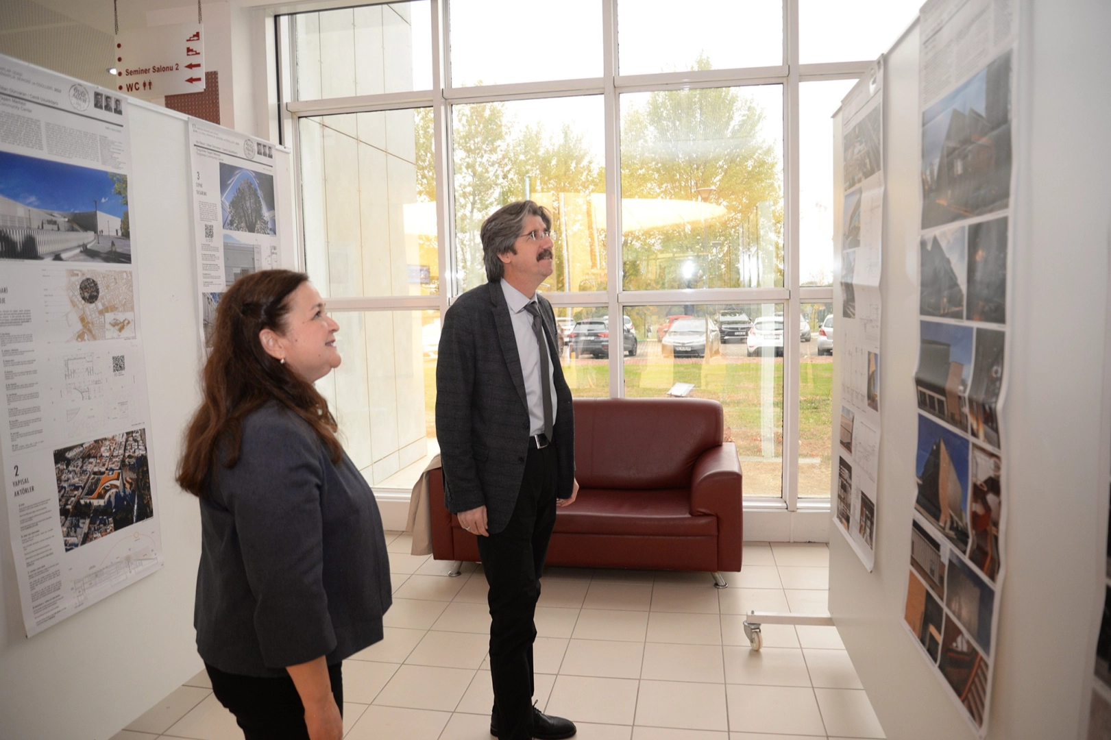 Rektör Prof. Dr. Ferudun Yılmaz açılışta yaptığı konuşmasında Mimarlık Fakültesi Dekanlığı ve tüm yöneticilerini, Cumhuriyetin 100. yılı nedeniyle gerçekleştirdikleri kıymetli organizasyondan ötürü tebrik etti. İktisat Bölümü akademisyeni olduğunu hatırlatan Prof. Dr. Ferudun Yılmaz, "Mimarlığın önemi hakkında konuşmak bizim alanımız olmasa da yaşadığımız dünyada mimarlık mesleğinin gerçeğini çok net bir şekilde gözlemliyoruz. Nereye gidersek gidelim, hayatın içinde mimari eserlerle karşılaşıyor ve bu kıymetli mesleğin getirilerinden faydalanıyoruz.