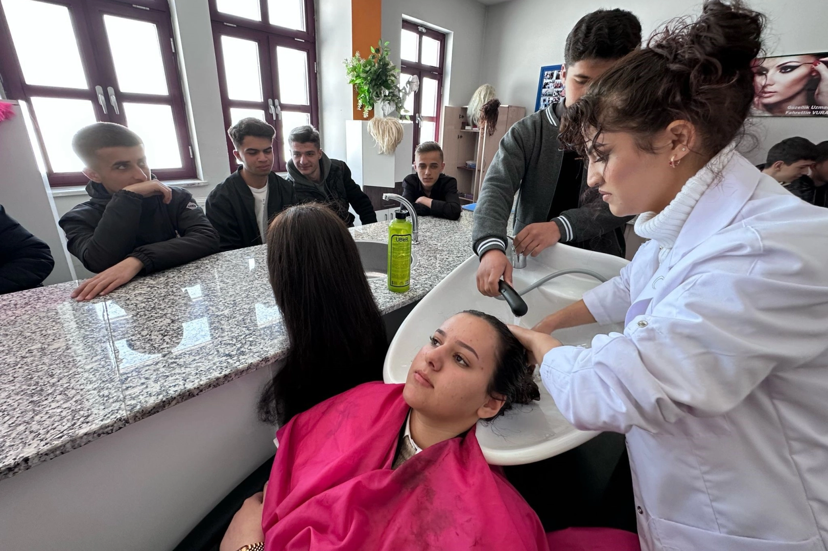 “Hem öğreniyorlar hem de meslek sahibi oluyorlar” Verdikleri derslerle öğrencileri meslek sahibi yaptıklarını söyleyen Saç Bakım ve Güzellik Bölümü Öğretmeni Sevgi Çirk, “40’a yakın öğrencimiz bu sınıfta uygulamalı ders görüyor. Bizde iki öğretmen olarak kuaför mesleği yönünde gereken her şeyi gösteriyoruz. Meslek öğrenen öğrenciler, mahalle sakinlerinin ücretsiz tıraş ve bakımlarını yaparken, özel günlerde ise bakıma muhtaç kişilerinin evlerine giderek hizmet veriyor. Bu bölümle öğrenciler hem öğreniyor hem de iş sahibi oluyorlar” dedi.