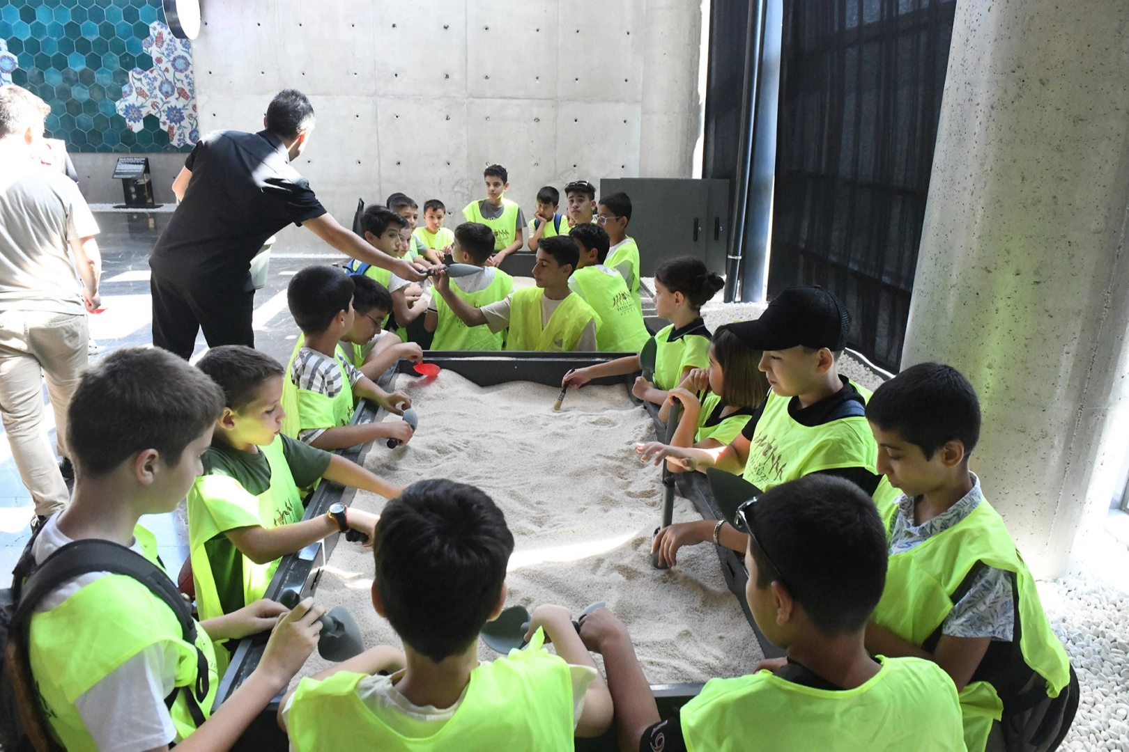 Müzede kurulan kum havuzunda yapılan madeni para ve seramik parçası bulma etkinliğinin yanı sıra, kil atölyesi, mozaik çalışması ve satranç gibi aktiviteler de miniklere hem öğrenme hem de keyifli vakit geçirme imkânı sunuyor.