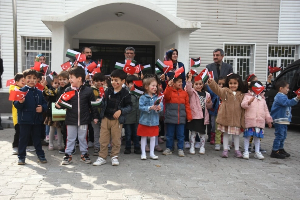Bitlis merkezde bulunan Hüsrevpaşa Kur’an Kursundaki minik öğrenciler, kumbaralarında biriktirdikleri paraları Filistin’e bağışladı. Yaklaşık 52 öğrenci, Kur’an kursu yetkilileri ile birlikte Bitlis İl Müftülüğüne ellerinde Türkiye ve Filistin bayrakları ile gelerek kumbaralarını İl Müftüsü M. Feysal Geylani’ye teslim etti. Toplanan yaklaşık 27 bin lira, İsrail'in saldırısına maruz kalan Filistinli çocuklara ulaştırmak üzere yetkililere verildi. Duyarlılıklarından ötürü Kur’an kursu yöneticilerini ve miniklerini tebrik eden Müftü Geylani, “Bu zamanlarda birlik ve beraberlik içinde olmalıyız. 20 günden beri Kudüs ve Gazze, Yahudi zulmüne karşı Yahudi işgali altındadır. Oradaki Müslüman kardeşlerimiz bunun mücadelesini veriyor. Cenab-ı Hak onları mahsur ve muzaffer eylesin. Gerçekten İslam alemi olarak bizim birleşmemiz ve kenetlenmemiz lazım. Bugün birlik beraberlik günüdür. Allah öğrencilerimizden razı olsun. İlimizde bulunan bütün Kur’an kursundaki öğrencilerimiz gelip bu yardımı bize ulaştırdı. İnşallah bizde en kısa zamanda bu yardımı Filistin’e ulaştırmaya çalışacağız. Gazze’nin kurtulması için en güzel şekilde mücadele veriyorlar. İnşallah o mücadelenin neticesinde Mescid-i Aksa’da özgür bir şekilde namaz kılmayı ve ezan okumayı Cenab-ı Hak cümlemize göstersin” diye konuştu.