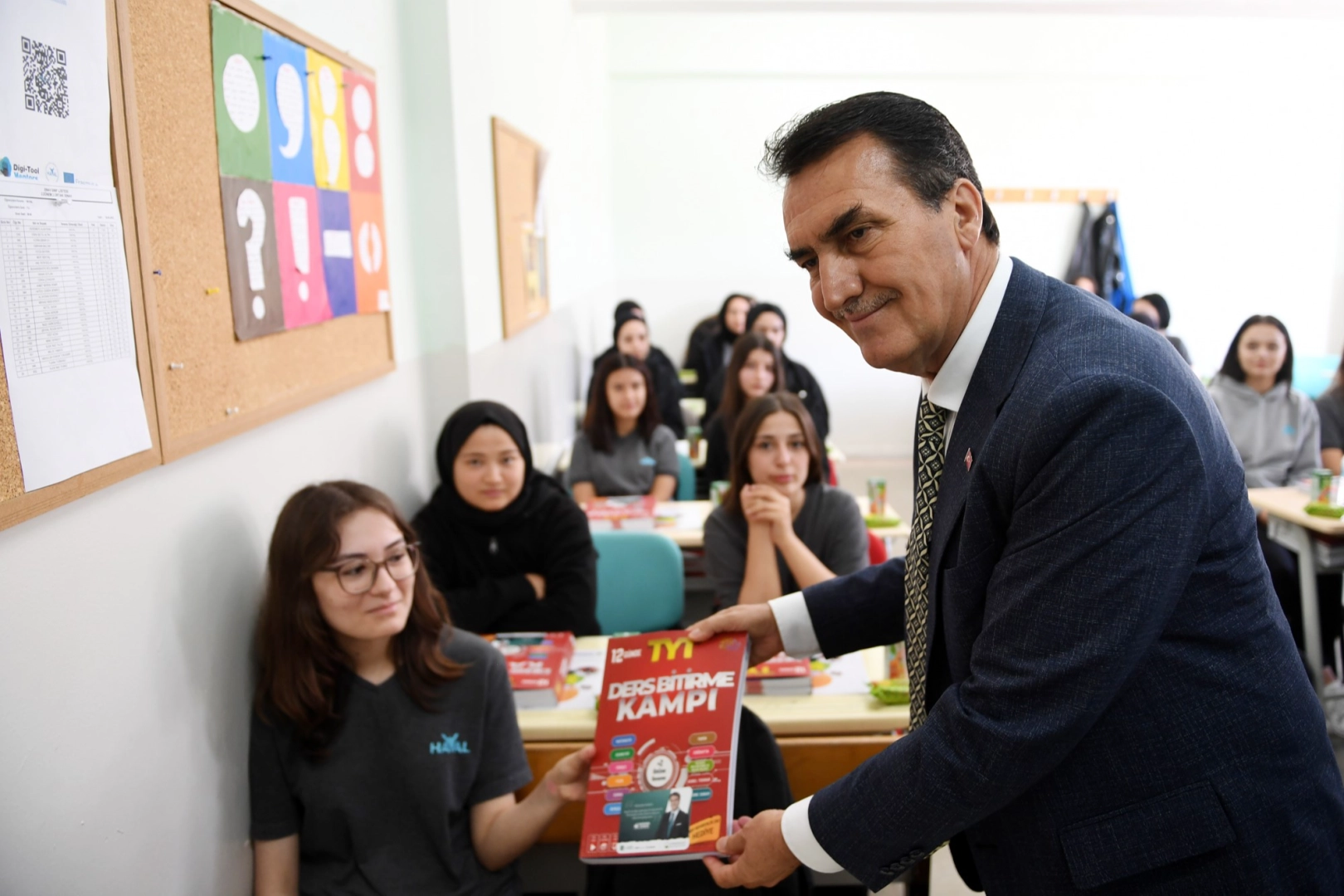 TYT ve AYT Ders Bitirme Kampı formatında hazırlanan kitap setlerini Hasan Ali Yücel Anadolu Lisesi’nde öğrencilere dağıtan Başkan Dündar, “Destek bizden, başarı sizden” mesajı verdi.