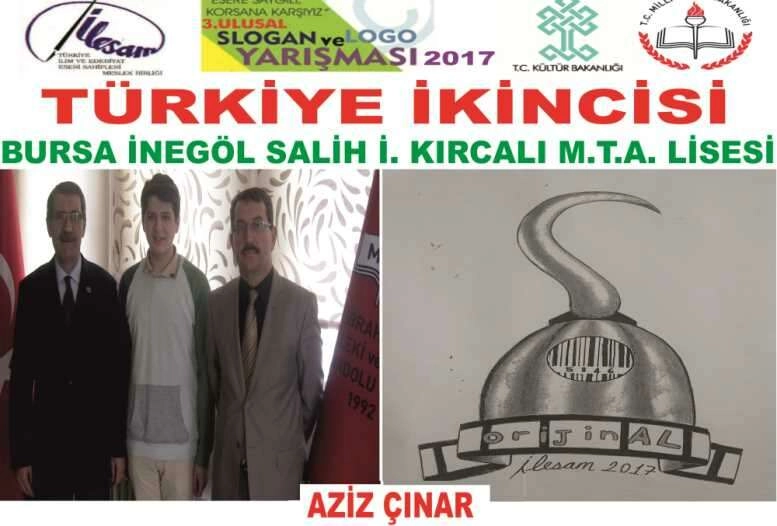 İLESAM(Türkiye İlim ve Edebiyat Eseri Sahipleri Meslek Birliği) T.C. Kültür Bakanlığı ve T.C. Milli Eğitim Bakanlığı iş birliği ile düzenlenen TÜRKİYE’deki Tüm Ortaokul ve Lise Öğrencileri İçin “Esere Saygılı, Korsana Karşıyız" 3.Ulusal Slogan ve Logo Yarışması Sonuçlandı. İnegöl Salih İbrahim Kırcalı Mesleki Teknik Anadolu Lisesi öğrencisi Aziz Çınar, Lise Kategorisi Logo dal