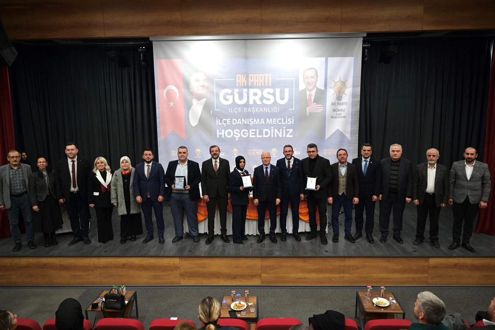 AK Parti Gürsu İlçe Başkanı Selçuk Karaduman da kongre sonrası geçen 13 aylık sürece ilişkin değerlendirmelerde bulundu. Gürsu teşkilatına verilen bin 600 kişilik üye hedefinin de üzerine ulaştıklarını belirten Karaduman, Mayıs ayı öncesi dönemle birlikte, Gürsu teşkilatına toplamda 2 bin 59 yeni üye kaydı gerçekleştirildiğini açıkladı. Karaduman, "Bugün ilçemizde her 5 seçmenden biri partimize üyedir. Bu başarı, teşkilatımızın disiplinli çalışmasının, birlik ve beraberliğinin sonucudur" ifadelerini kullandı. Açılış konuşmalarının ardından danışma meclisi oturumuna geçildi. Teşkilat mensuplarının soruları tek tek cevaplandı. Program, yeni üyelere rozet takdimi ile sona erdi.