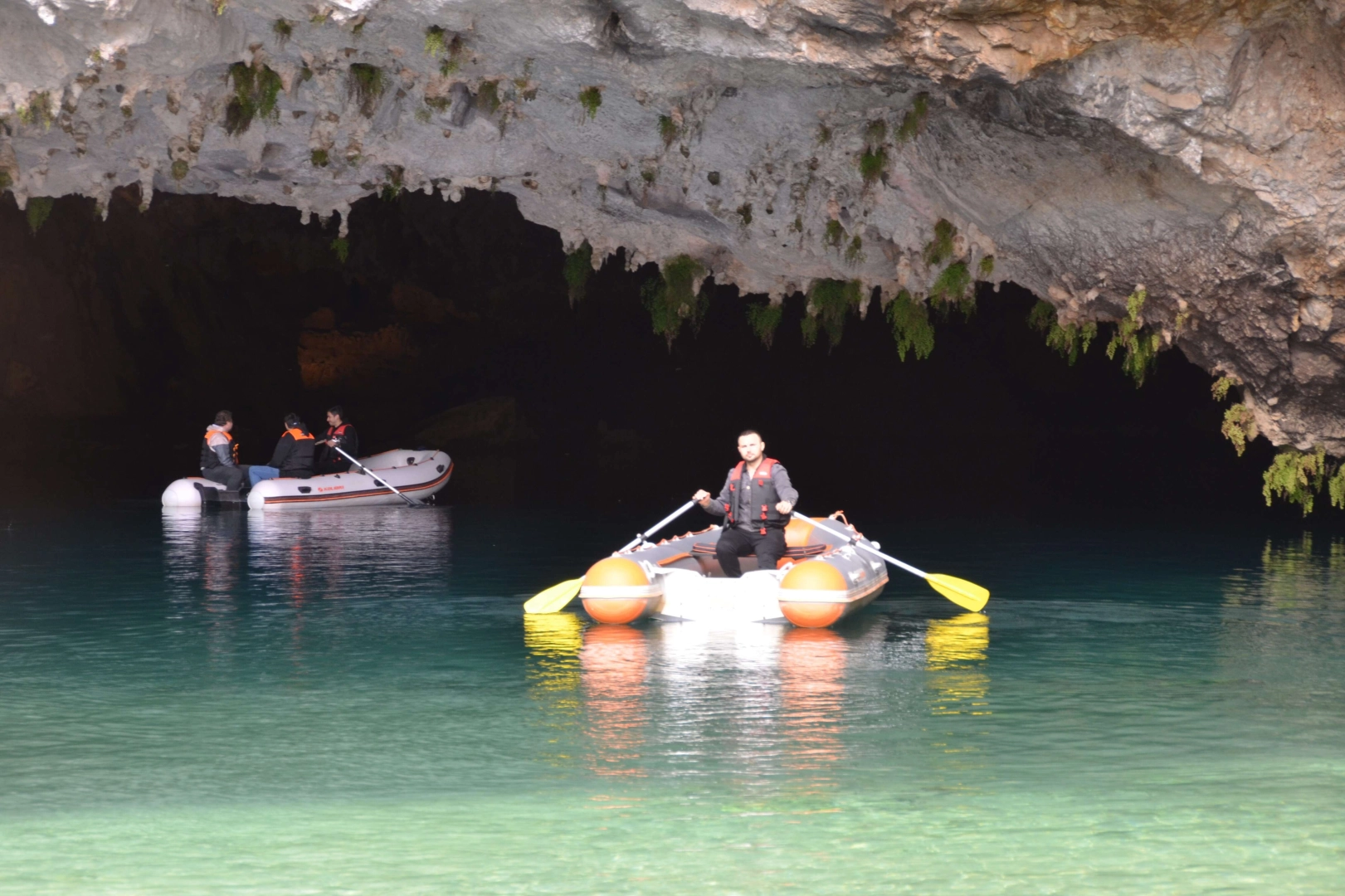 Yeraltı gölü üzerinde masmavi turkuaz renkteki sularında bot ile gezilebilen mağara yerli ve yabancı turistlerin akınına uğradı. Sodalı suyu dolayısıyla turkuaz renginde olan göl, mağaranın içine süzülen ışıklarla ziyaretçilerine görsel şölen sunuyor. Antalya'nın İbradı ilçesi Ürünlü Mahallesi sınırları içerisinde bulunan mağara artık yılın dört mevsiminde açık tutuluyor. Sadece yağışlı havalarda olabilecek tehlikelere karşı zaman zaman kapatılan mağarayı üç ay içerisinde 35 bin kişi ziyaret etti. Günde ortalama 350 kişinin ağırlandığı ve gezi botları ile mağaranın güzelliklerini keşfe çıkan yerli ve yabancı ziyaretçiler, Antalya'nın bu cennet köşesine hayran kaldı. Mağaranın işletmesini yürüten İbradı Belediyesi personeli ve Altınbeşik Mağarası işletme sorumlusu Hasan Yaman, Altınbeşik Mağarasının Antalya’nın İbradı İlçesi Ürünlü Mahallesi yakınlarında bulunduğunu ve Dünyanın üçüncü, Türkiye’nin en büyük yeraltı gölü mağarası olduğunu söyledi. Sodalı suyu dolayısıyla turkuaz renginde olan gölün mağaranın içine süzülen ışıklarla ziyaretçilerine görsel şölen sunduğunu söyledi. Bot turu yapılabilen dünyada üçüncü, Türkiye’de ise tek mağara olduğuna dikkat çeken Yaman, “Botlar ile turlarımız oluyor. 200-250 metre botlarla içeriye giriyoruz. Normalde mağaranın uzunluğu 65 kilometrelik bir uzunluğa sahiptir. 3 katlı olduğu için diğer bölümlere profesyonel ekipler tarafından girilmektedir” dedi. Yaman, mağaranın özellikle yabancı ziyaretçiler tarafından her geçen gün büyük ilgi gördüğüne dikkat çekti. Yaman, "Gelen misafirleri 200 metre bot turu yaptırıyoruz. Mağaranın açık olduğu dönemde yaklaşık 10 aylık bir süreçte 100 bin ziyaretçi trendini yakaladık. Bu da ilk kez rekor oldu. Dünyanın dört bir tarafından ziyaretçi ağırladık. Önümüzdeki yıllarda ise bu sayıyı katlayarak ilerleyeceğiz” dedi. “Mağara 2 yıldır yılın 12 ayı açık kalıyor” Mağaranın yılın 12 ayı açık kalacağını belirten Yaman, “Mağara önceki yıllarda yılın belli bir ayına kadar hizmet veriyordu. Mağaranın işletmesi 2 yıldır İbradı Belediyesindedir. Mağaranın işletmeciliği daha önce büyükşehir belediyesinde bulunuyordu. O dönemlerde mağara kış sezonunda tamamen kapanıyordu. Mağaranın işletmeciliği belediyemize geçtikten sonra belediye başkanımızın isteği ile artık 12 ay ziyaretçi kabul ediyoruz. Belediye Başkanımızın talimatları ile 2 yıldır mağaramızı sürekli ziyaretçilere açık tutuyoruz. Bu kış ikinci kış sezonumuzdu. Geçen yıl kış sezonu ziyaretçi sayımız daha azdı. Çünkü herkes sezonluk olarak biliyorlardı. Geçen yıl mağaramızı açık tutmamızın bu yıl faydasını gördük. Artık herkes mağaranın 12 ay açık olduğunu biliyor ve bu kış da iyi bir sezon geçirdik. Yılın ilk üç ayında ise 35 bin ziyaretçimiz mağarayı ziyaret etti. 20 bin yabancı 15 bin civarında da yerli turistlerimiz mağarayı gezdi” diye konuştu. “En fazla yabancılar ziyaret etti” Pandemiden çıkıp turizmin toparlanması ile birlikte yabancı turist sayısında büyük artış olduğunu dikkat çeken Yaman, “Bu yıl ziyaretçi sayımızda büyük bir artış oldu. Kış ayında en fazla Almanlar, ikinci olarak da Rus turistlerin akını oldu. Belediye olarak 12 ay yapmamızın faydalarını gördük” dedi. “Mağaranın su seviyesi yükseldi” Altınbeşik Mağarasının yaz aylarında su seviyesinde azalma olduğunu söyleyen Yaman, “Mağaramız yağışlar ile birlikte yeraltı sularının yükselmesi ile mağaranın da su seviyesinde yükselme oluyor. Şu anda kış mevsiminde yağan yağmurlar ile su seviyemizde 5 metre yükselme oldu. Mağaranın su seviyesi yükselmesi ile su mağaranın dışından akarak başka bir güzellik sunuyor. Şu anda su seviyesi olarak en güzel anlarını yaşıyoruz. Mağaramız her mevsim başka bir güzel. Botlarla mağaranın son noktasına kadar ziyaretçilerimizi gezdirebiliyoruz” şeklinde konuştu. “Altınbeşik Mağarası” Altınbeşik Mağarası, Tarım ve Orman Bakanlığı Doğa Koruma ve Milli Parklar Genel Müdürlüğü ile İbradı Belediyesi arasında yapıla protokolle 5+5 yıl olarak İbradı Belediyesi tarafından işletiliyor. Mağara, milyonlarca yıllık sürecin izlerini taşıyor. İbradı ilçesine 13,5, Ürünlü köyüne 4 kilometre uzaklıktaki 5 bin 500 metre uzunluğundaki Altınbeşik Mağarası, adını üst kısmında yer alan Altınbeşik Tepesi'nden alıyor. Denizden 450 metre yükseklikte olan mağara, 1966 yılında Türkiye Speleoloji Derneği kurucusu ve Fahri Başkanı Dr. Temuçin Aygen tarafından bulundu ve 1994 yılında milli park ilan edildi. İçindeki sarkıt ve dikitlerle görülmeye değer manzaralar sunan Altınbeşik Mağarası, beyaz renkli traverten ve içindeki gölet oluşumlarıyla ziyaretçilerin ilgisini çekiyor. Su derinliğinin bazı yerlerde 40 metreyi bulduğu mağaraya gelen turistler, etkileyici doğa oluşumunu kiraladıkları botlarla görme imkanı yakalıyor.